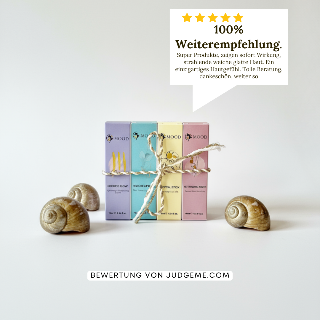 Gesunde, gepflegte Haut hingegen strahlt – mit einer Lebendigkeit, die man auf den ersten Blick erkennt. Bei MOOD Naturals setzen wir genau hier an: Mit einer durchdachten Pflege, die sich auf das Wesentliche konzentriert, alles Überflüssige weglässt und die Kraft der Natur nutzt. Während viele Hautpflegeprodukte mit aggressiven und unnötigen Ansätzen die Haut belasten, bieten wir eine kluge Alternative:
