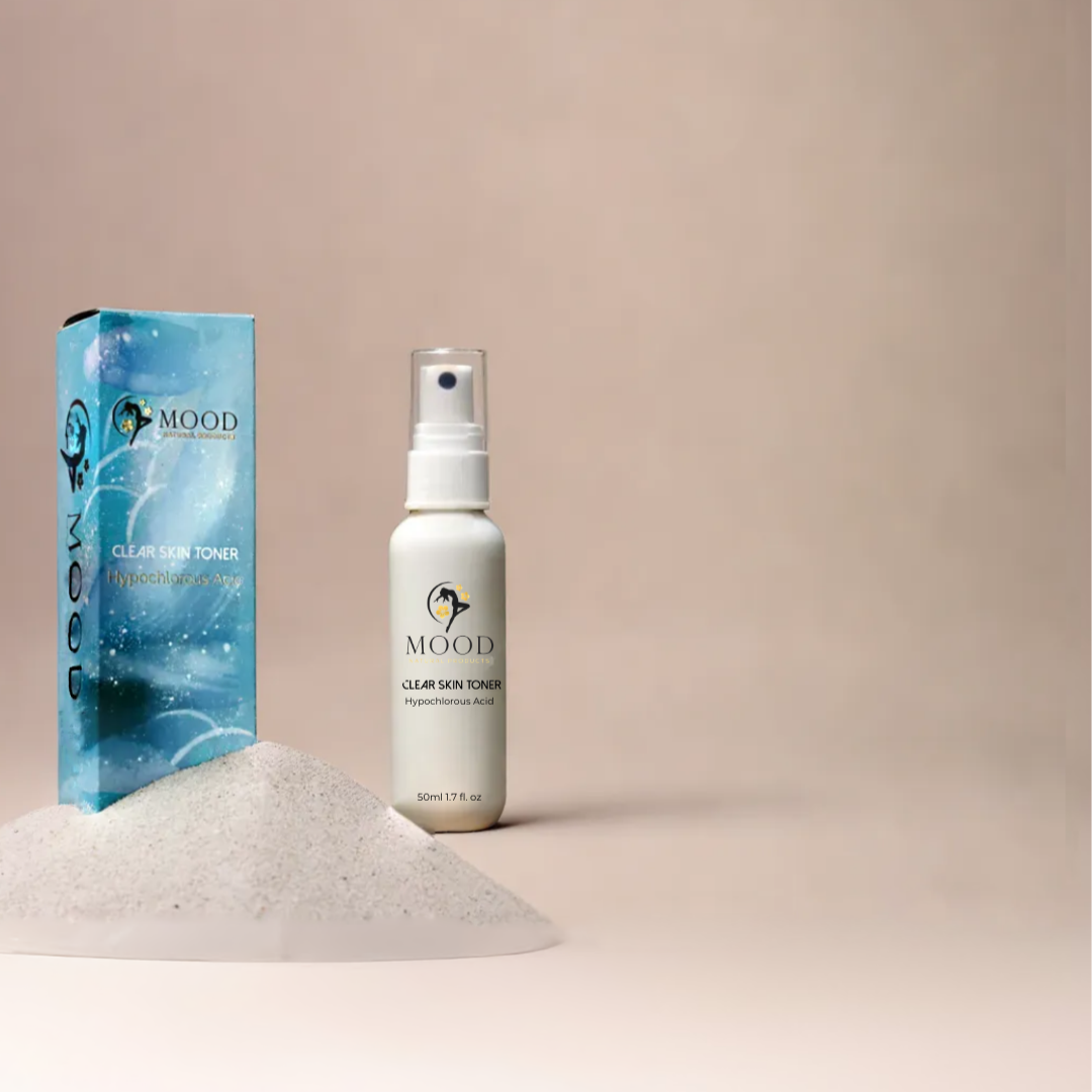 Clear Skin Toner ist überraschend sanft und dennoch effektiv, auch für trockene Haut. Die alkoholfreie Formel beruhigt die Haut, ohne sie auszutrocknen. Die entzündungshemmenden Eigenschaften lindern Irritationen, Rötungen und Schwellungen. Zusätzlich kann HOCl die Zellerneuerung fördern, was zu einer gesünder aussehenden Haut beiträgt.