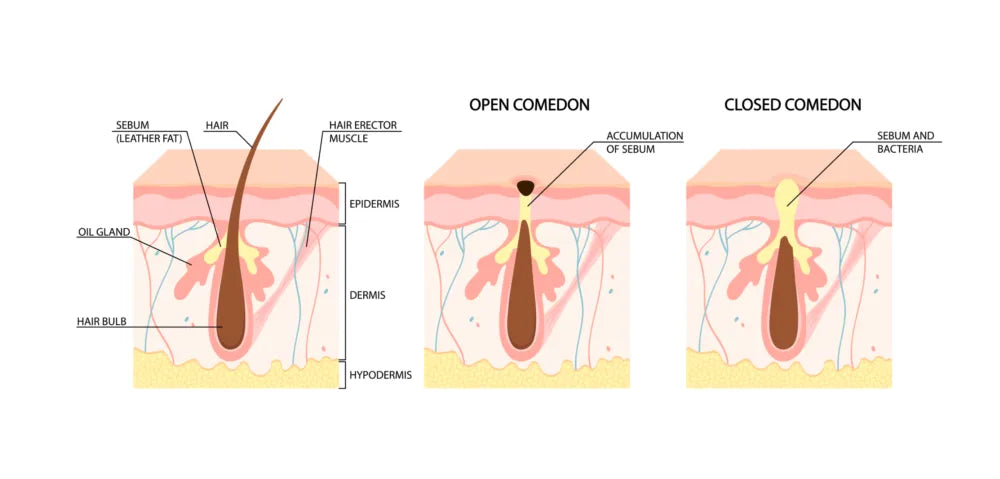Komedonen sind kleine Hautunreinheiten, die durch eine Verstopfung der Poren entstehen. Sie können entweder offen (Mitesser) oder geschlossen (Whiteheads) sein.