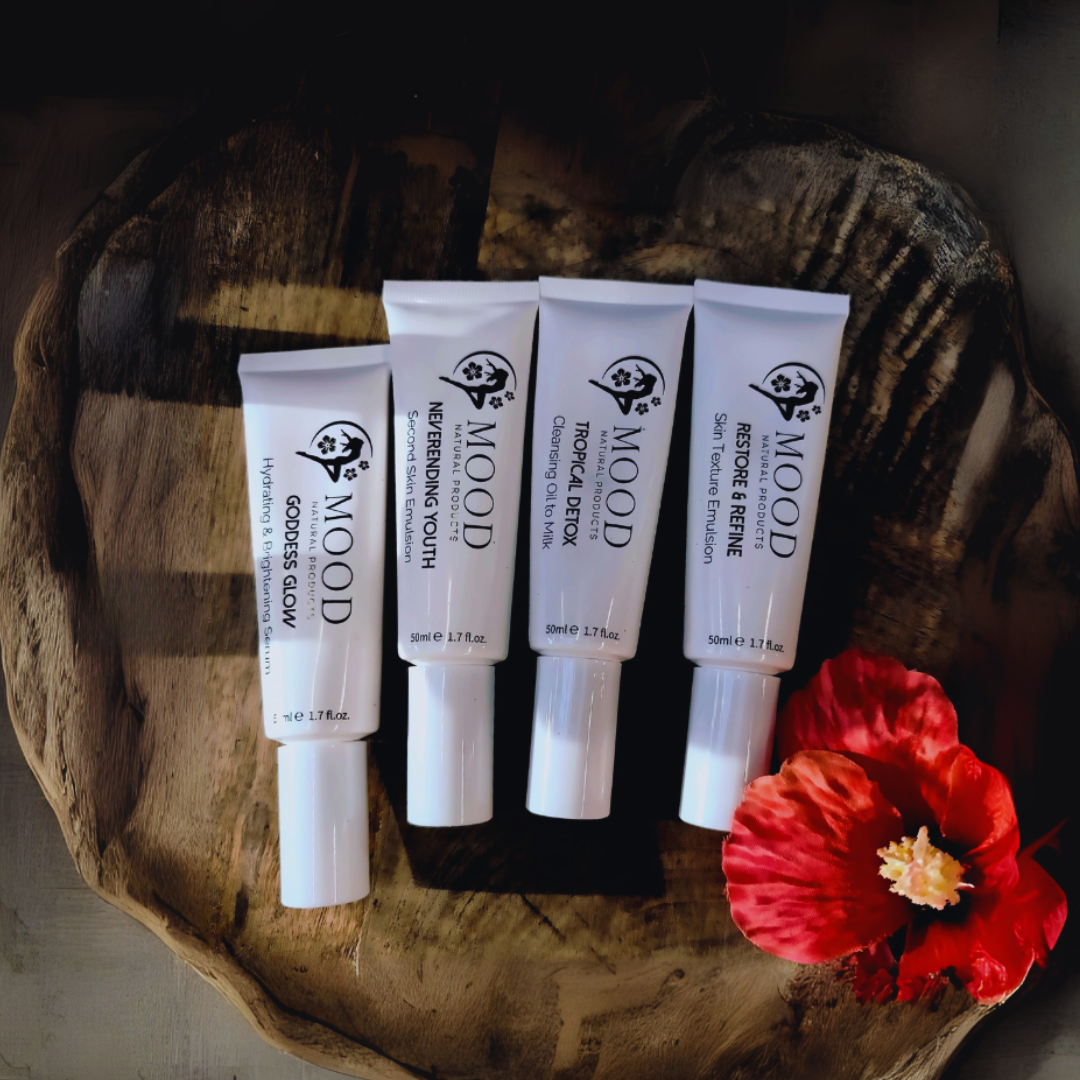 Goddess Glow: Aqua, Glycerin, C9-12 Alkane, Hydrogenated Phosphatidylcholine, Pentylene Glycol, Isoamyl Laurate, Canarium Ovatum Pulp Oil, Oryza